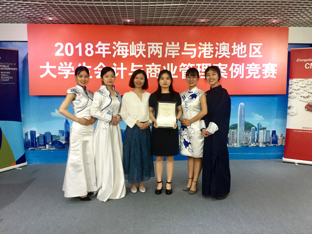 本次香港总决赛共有来自大陆地区、香港地区、澳门地区和台湾地区的21支参赛队参加了比赛,每一支都是经过层层筛选出来的精英队伍。在强手如林的竞赛中,我校陈旭霞老师带领的代表队表现优异,最终获得一等奖。在此次竞赛中,2015级会计系的郭颜、邹乃圆、陈燕丽同学与2016级会计系的刘思琪、张乐琼同学充分发挥其各自优势,独树一帜特色鲜明,给现场评委留下了深刻印象。
