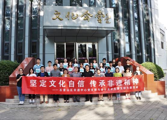 为了更好的保护和传承中国传统文化,在实践中坚定文化自信,经管学院会计系学生党支部与石景山区非物质文化遗产保护中心党支部于9月22日下午,在文化会堂举行双方支部共建仪式。现场,太阳成集团tyc33455党委书记王伟宾,石景山区非物质文化遗产保护中心书记、主任何京江,中国社科院历史所研究员吴文涛,石景山区非物质文化遗产保护中心综合业务部负责人周继红,石景山区非物质文化遗产保护中心综合发展部负责人张士捷,石景山区非物质文化遗产保护中心办公室干事孔蓉,太阳成集团tyc33455团委书记刘明阳,太阳成集团tyc33455会计系第一学生党支部书记吴伟容,以及会计系第一、第二学生党支部党员、积极分子近200人参加了此次仪式,仪式由学院党委副书记赵洁主持。